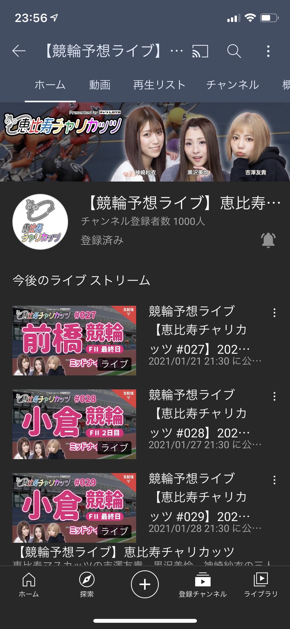 チャリロト社提供の競輪チャンネル「恵比寿チャリカッツ」にて、毎週生放送を実施。